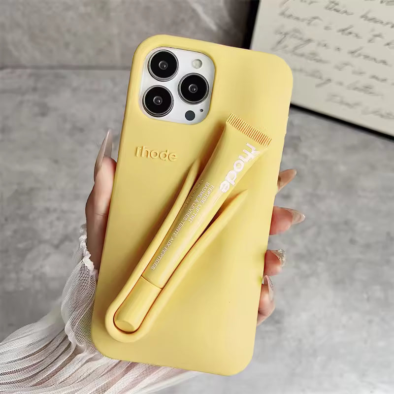 With Lipstick Phone Case for iPhone 17 Pro Max Silicone Lip Gloss Holder Hot INS Soft Cover Funda